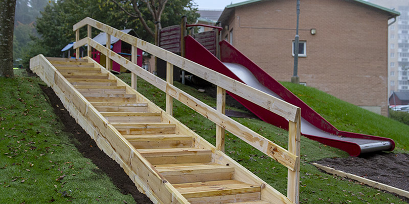 En ny trappa av Organowood till rutschkanan..