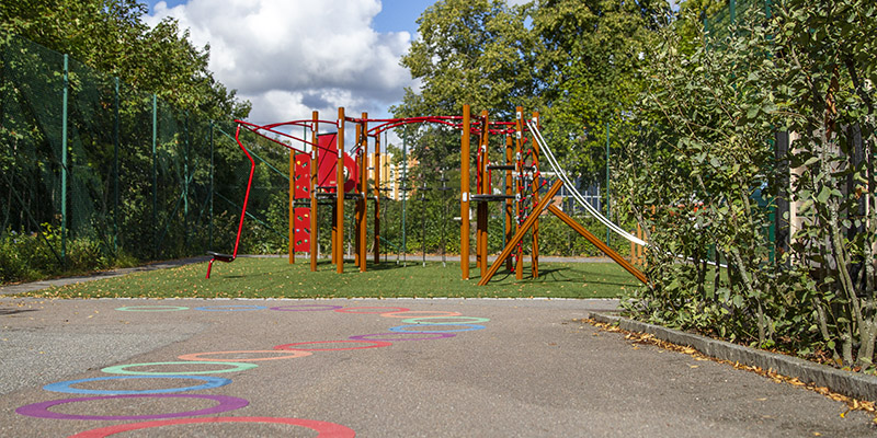 Gullingeskolan har två rejäla lekställningar och en konstgräsplan.